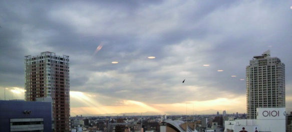 窓の外を見たら、雲間から光の柱が出来ていたので思わず、記念にパシャリ。