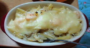 そして、今回はマカロニグラタンとコンソメスープを作りました。